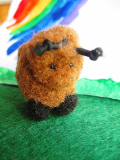 Брала с собой горсть готовых помпонов. Думала сделать из них лапки вязанным овечкам. Но что-то я устала уже от парнокопытных. Утомилась. Но помпоны использовать хочется. Не везти же обратно?