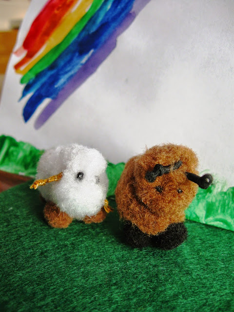 такие смешные зверики получились. Честно полагала. что выйдет овечка и баран. Если белое существо ещё условно можно назвать овечкой, то коричневое на барана не тянет. Только на козлёнка.