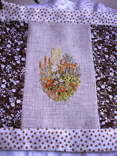 Для подушечки под спину использовала испорченную вышивку (помните, я не теми нитками вышила?) Подушка набита холофайбером и зашита насмерть. Всё-таки подушка будет не так пачкаться, как сидушка.