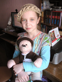 А это Катя демонстрирует новый беретик, полученный по душевному обмену. Как по её головке связан!
